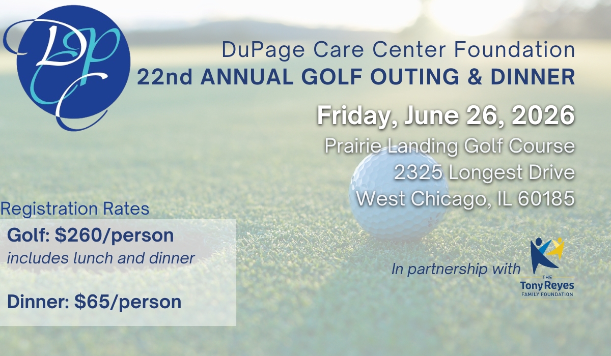 The DuPage Care Center Foundation is thrilled to return to the beautiful links of West Chicago’s Prairie Landing Golf Course on June 26th for its 2026 golf outing, lunch, and dinner. For twenty-two consecutive years now, this event has brought together individuals, business owners, and community leaders from all over DuPage County—all to benefit the 200+ residents that call DuPage Care Center home.